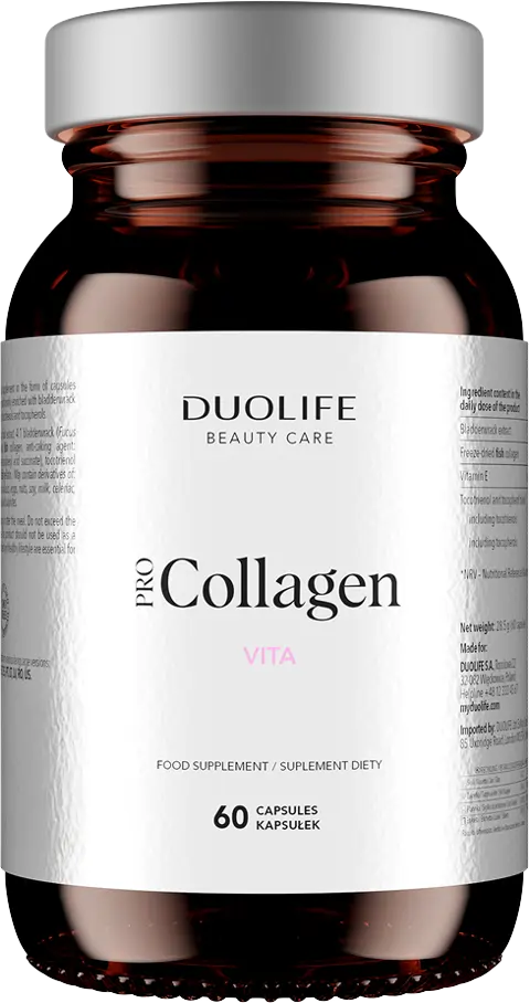Active ingredients found in DUOLIFE Pro Collagen VITA support the natural synthesis of collagen in the body and repair processes which fosters the maintenance of optimal osteoarticular system health and hampering the effects of skin ageing. They also help protect the cells against oxidative stress.